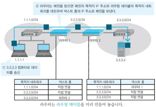 이처럼 라우터 간에 라우팅 정보를 교환하기 위한 프로토콜을 '라우팅 프로토콜'이라고 한다.